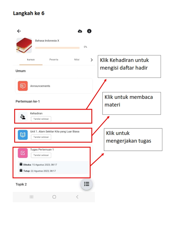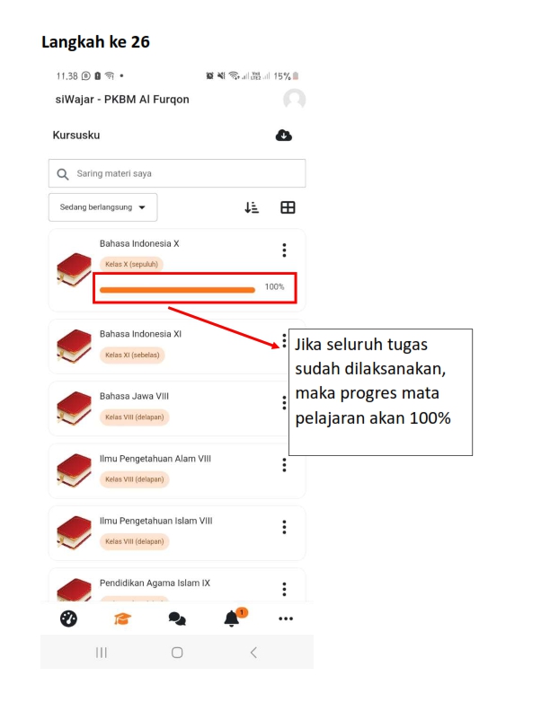 Berikut adalah panduan masuk, mengisi kehadiran, membaca materi dan mengerjakan tugas daring pada siWajar :