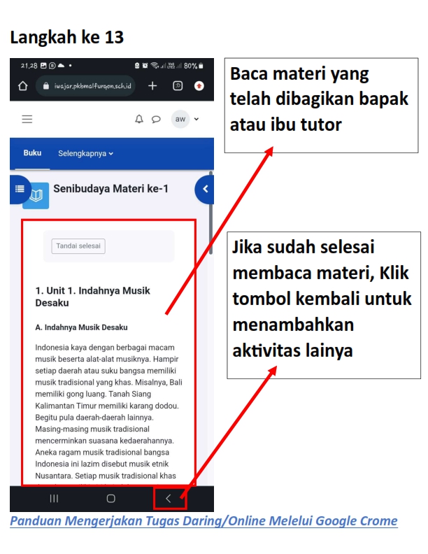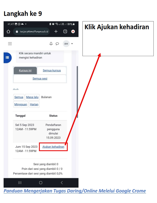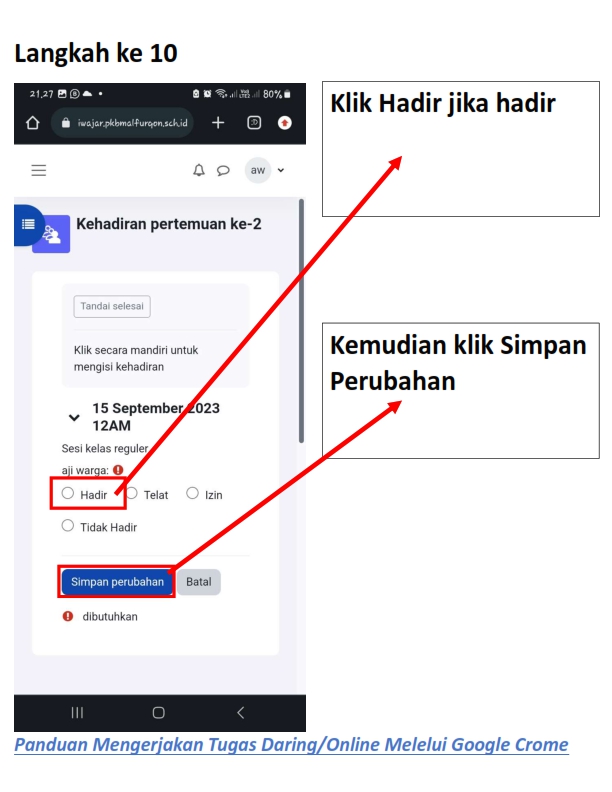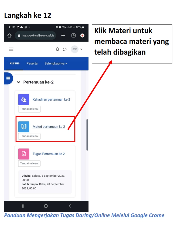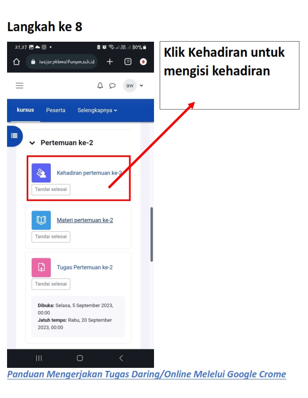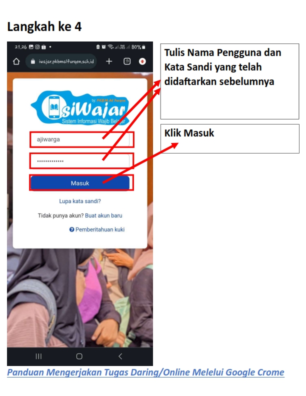 Berikut adalah panduan masuk, mengisi kehadiran, membaca materi dan mengerjakan tugas daring pada siWajar :